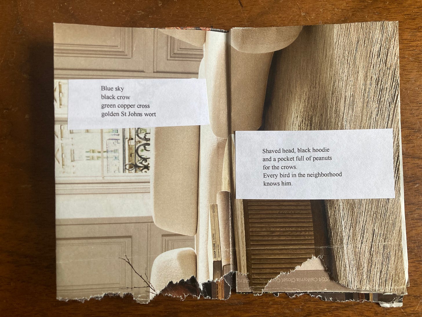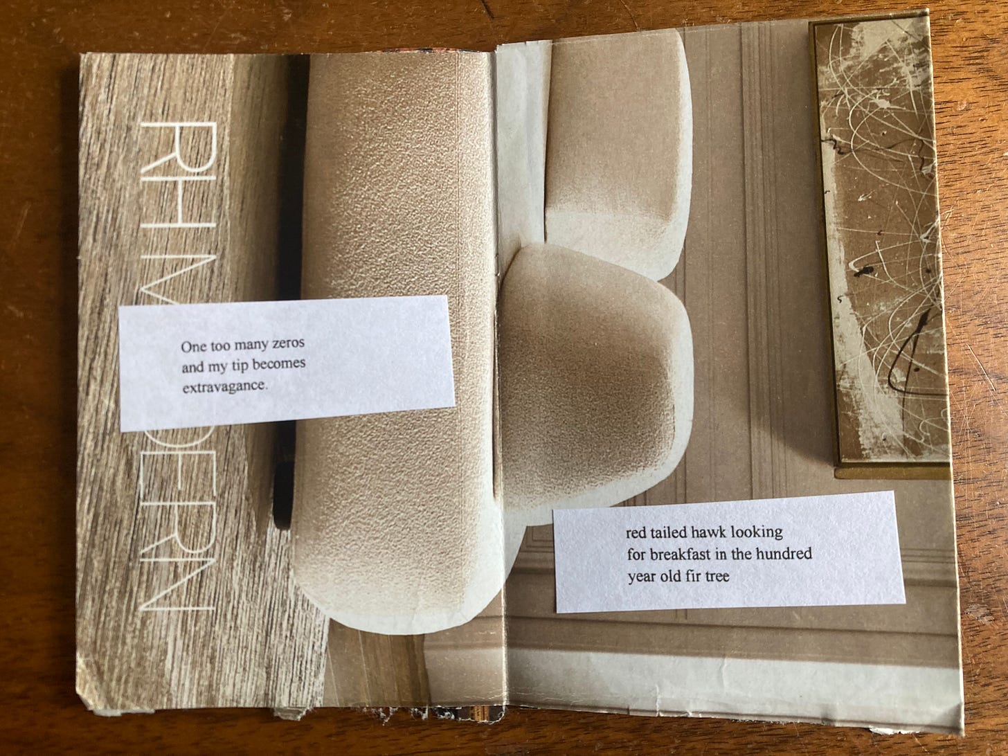 Oh this is delightful. The magazine pages make a perfect backdrop for poetry.